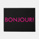 The french word for BONJOUR (hello in English) in pink on a black background.