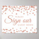 "Sign Our Wedding Guest book" Wedding Reception Sign w/ Rose Gold Faux Glitter Confetti White design