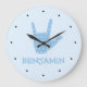 This boy's name clock with an ASL (American Sign Language) "I love you" sign and blue dots pattern is perfect for a baby nursery or boy's room. Name can be customized to any name or text.