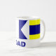 Coffee mug with "Dad" spelled out using nautical signal flags