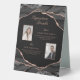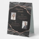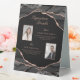 Announce your signature wedding drinks with this elegant design featuring classic shades of black, white and grey agate with metallic rose gold foil veins. Add your own special touch with your names, signature drink name and ingredients, along with your favourite his and her photos.