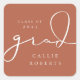 Signature script "grad", graduation envelope seal. White typography on rust orange background.