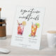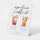 This chic signature mocktails pedestal sign features simple black tyopgraphy above 2 cute drinks and their ingredients for your wedding bar. A Shirley Temple and non-alcoholic Arnold Palmer drink add a cool flair to your bar menu. Complete with the couple's names and date for their reception.