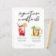 This chic signature mocktails list features simple black tyopgraphy above 2 cute drinks and their ingredients for your wedding bar. A Shirley Temple and non-alcoholic Moscow mule add a cool flair to your bar menu. Complete with the couple's names and date for their reception.
