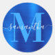 Signature Monogram Royal Blue Foil Classic Round Sticker