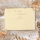 Featuring signature script names, this elegant return address envelope can be personalised with your names and address details in chic gold lettering on a buttercup yellow background. You can customise the background to your favourite wedding theme colour. Designed by Thisisnotme©