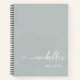 Minimalist Sage Green Elegant Girly Monogram Name Signature Script Custom Personalised Cookbook Recipe Notebook. These design featuring your first name in a pretty hand lettered style swash tail font typography on sage green or dusty green colour background. These are easy to customise and can be used as a Cookbook, Recipe Planner and more. Also great stylish feminine gift for birthday, wedding, bridal shower, mother’s day, anniversary and for anyone who loves glamourous style.