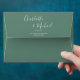 Featuring signature script names, this elegant return address envelope can be personalised with your names and address details in chic lettering on a eucalyptus green background. You can customise the background to your favourite wedding theme colour. Designed by Thisisnotme©