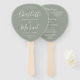 The fans are very pretty and easy to assemble. We utilized the original template and just inserted the names of our wedding party. After the product arrived we noted they read,”Made of Honor” rather than “Maid of Honor”. Upon re-checking the website we noticed the typo is in the original template and was not a mistake on our end. It is too late to return because our wedding is in just a few days but if we had time we would certainly request an exchange. See review above regarding typo.