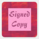 A sticker label to indicate a book, magazine, article, photo, etc., has an author's / illustrator's/ artist's/ photographer's autograph attached.