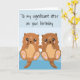 This card is great fun and good quality. I loved the humour inside and on the back. There is the opportunity to change the orientation of this card from landscape to portrait, which I did. It is relatively straightforward to amend the typeface to fit the new orientation. It was well packaged with no plastic. The printing on this card is excellent.