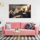 Painting showing Thomas Jefferson, John Adams, Roger Sherman, Robert Livingston, and Benjamin Franklin presenting the first draught of the Declaration of Independence to the Second Continental Congress. Less than a week later, on July 4, 1776, the colonial delegates signed the Document. Celebrate American History with this digitally restored vintage war poster from The War Is Hell Store.