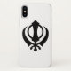 This design features the khanda (in Punjabi, ਖੰਡਾ, khaṇḍā), which is a symbol of Sikhism, a traditional religion of India that now has followers around the world. The symbol reached its current form around the first decade of the 20th century.