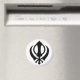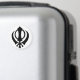 This design features the khanda (in Punjabi, ਖੰਡਾ, khaṇḍā), which is a symbol of Sikhism, a traditional religion of India that now has followers around the world. The symbol reached its current form around the first decade of the 20th century.