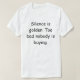 Silence is golden. Too bad nobody is buying - Funny Love & Relationship Slogans, Quotes, Sayings.