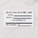 This silent auction bid card is perfect for letting people fill in their name, phone number and dollar amount of their bid on any item and placing it into the bid box. These silent auction bid cards can easily be spread out on auction tables and on dining tables all through the room.