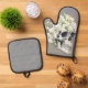 Silent Bloom: Skull & White Lilies Oven Mitt & Pot Holder Set