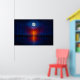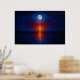 “Silent Horizon: Moon Over Water” captures the quiet power of a moonlit landscape, blending fiery sunset tones with cool, reflective blues. Tall, silhouetted trees rise against a glowing sky as the full moon casts soft light across the still water below. The mirrored reflections create a sense of balance, serenity, and depth, making this piece a striking focal point for any modern home or gallery wall.