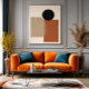 A minimalist composition that explores harmony between geometric shapes and earthy tones. The subtle intersection of the black circle with translucent rectangles suggests balance, contrast, and introspection within a quiet visual space.