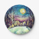 Silent Night Winter Full Moon Paper Plate