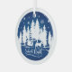 Silent night with sleight snowflakes pines blue glass tree decoration