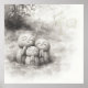 In this ink painting, three gentle figures rest together, emerging softly from mist and shadow.