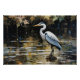 "Silent Reflection" blends nature and digital art in an ethereal scene. A majestic heron stands still on a pixelated lake, surrounded by golden leaves and geometric ripples. A contemporary touch for spaces that invite serenity and contemplation.
