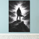 This powerful black and white canvas artwork captures the essence of inner strength, discipline, and quiet determination. A solitary figure stands at the edge of a rugged mountain peak, facing a dramatic horizon where light breaks through the storm, symbolizing clarity after struggle and unwavering resolve.