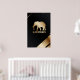 This luxury minimalist art print features a striking golden elephant silhouette on a deep black background. A symbol of wisdom, strength, and elegant resilience.