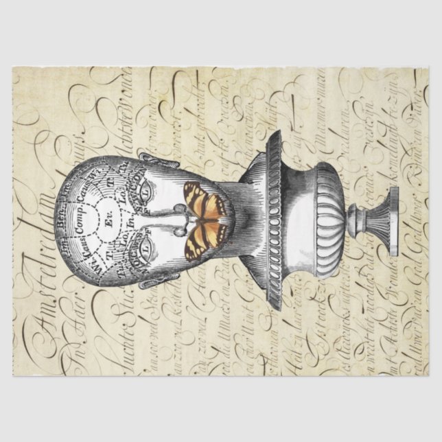 Purely Vintage and Gothic Head with Butterfly in Garden Urn