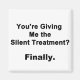 For the sarcasm lover in all of us. Check out this witty “You're Giving me the Silent Treatment? Finally.” design on apparel, mugs, mousepads, buttons, and other unique gifts.