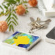 Colourful abstract art original fine art of lady silhouette with colourful watercolor designs in blue and gold.