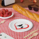 This party plate design features a silhouette cowgirl barrel racer and horse with a modern red heart. ~