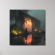 A lone silhouetted figure sits in quiet contemplation before a massive, vine-draped concrete ruin as a blazing orange-red sunset floods through the open doorway, turning the scene into a portal of fire. Thick moss, ferns, and jungle greenery reclaim the weathered structure while still water at the figure’s feet mirrors the intense glow in perfect symmetry. Subtle firefly-like lights twinkle among the leaves, adding delicate magic to the moody, reflective atmosphere of time, resilience, nature’s persistence, and the beauty found in stillness amid decay. Ideal for meditation rooms, bedrooms, home offices, therapy spaces, dark-fantasy decor, or as deeply evocative gifts for introspective souls, nature lovers, spiritual seekers, post-apocalyptic enthusiasts, or anyone drawn to quiet power and atmospheric depth.