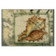 Stay relaxed with this piece of contemporary art by Jennifer Goldberger. Her collection of seashell art is relaxing and inspirational. This piece of art focuses on a large Conch seashell surrounded by green coral reef. Get this beautiful ocean art today with a silhouette feel on your next product.