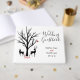 This winter wedding guestbook features a silhouette doe and buck deer couple. The are standing under a leafless tree with a red bird. This invite is done in black, white and red. It can be personalised with name(s), a date and any text that you wish to add. *