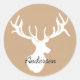 Christmas holiday stickers with a natural, simple look, features a tan kraft paper look background with a white deer buck silhouette and an area you can personalise with your name.