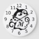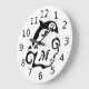 Silhouette Dolphin in a Black Sea Wave Monogram Large Clock