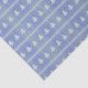 This pretty tissue paper is perfect for the Holiday Season, but can easily go through the entire winter. It features a repeating pattern of faux knit silhouette tree images. The light coloured images are placed on a medium blue background. Decorative stripes separate the rows of images, while delicate snowflakes fall over all.