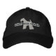 This cool Kerry Blue Terrier hat is embroidered with the dog breed's silhouette, standing with its name printed in front. The Kerry Blue Terrier silhouette is a silver grey, and the text outline is white. The design looks amazing on our black hats!