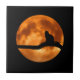 This design features an elegant image showing the outline of a cat on the branch of a tree. The moon in the background is full, shining bright orange.