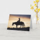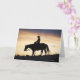 Silhouette of a Cowgirl on her horse against the Card