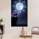 Silhouette of a husky howling on a cliff poster