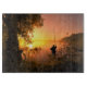 Silhouette of Fisherman on Lake at Sunset Cutting Board
