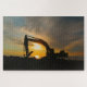A silhouetted excavator waits along the breakers as the sun sets over Lake Superior. The fading light reflects across the water, casting warm tones through the clouds and highlighting the contrast between industry and shoreline. A quiet end-of-day moment where work meets the lake.