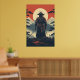 Silhouette of a Samurai Warrior with the moon, mountains, and trees.