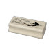 This name and return address ink stamp features a silhouette snow skier. On the lower third is your name or other text framed by thin lines. Above that is another text field that can hold your return address. Distinctive, and perfect for anyone who loves to snow ski.