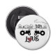 This black and white LOVE bottle opener features two silhouette tractors in love. They are set against a charming line drawing country farm.
