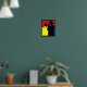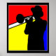 Silhouette trombone player, mondrian style art poster