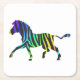 Silhouette Zebra Black and Rainbow Square Paper Coaster